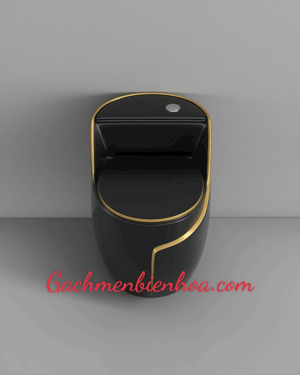 Bồn cầu trứng đen viền vàng với thiết kế sang trọng giúp không gian phòng vệ sinh trở nên đẳng cấp và sang trọng hơn.