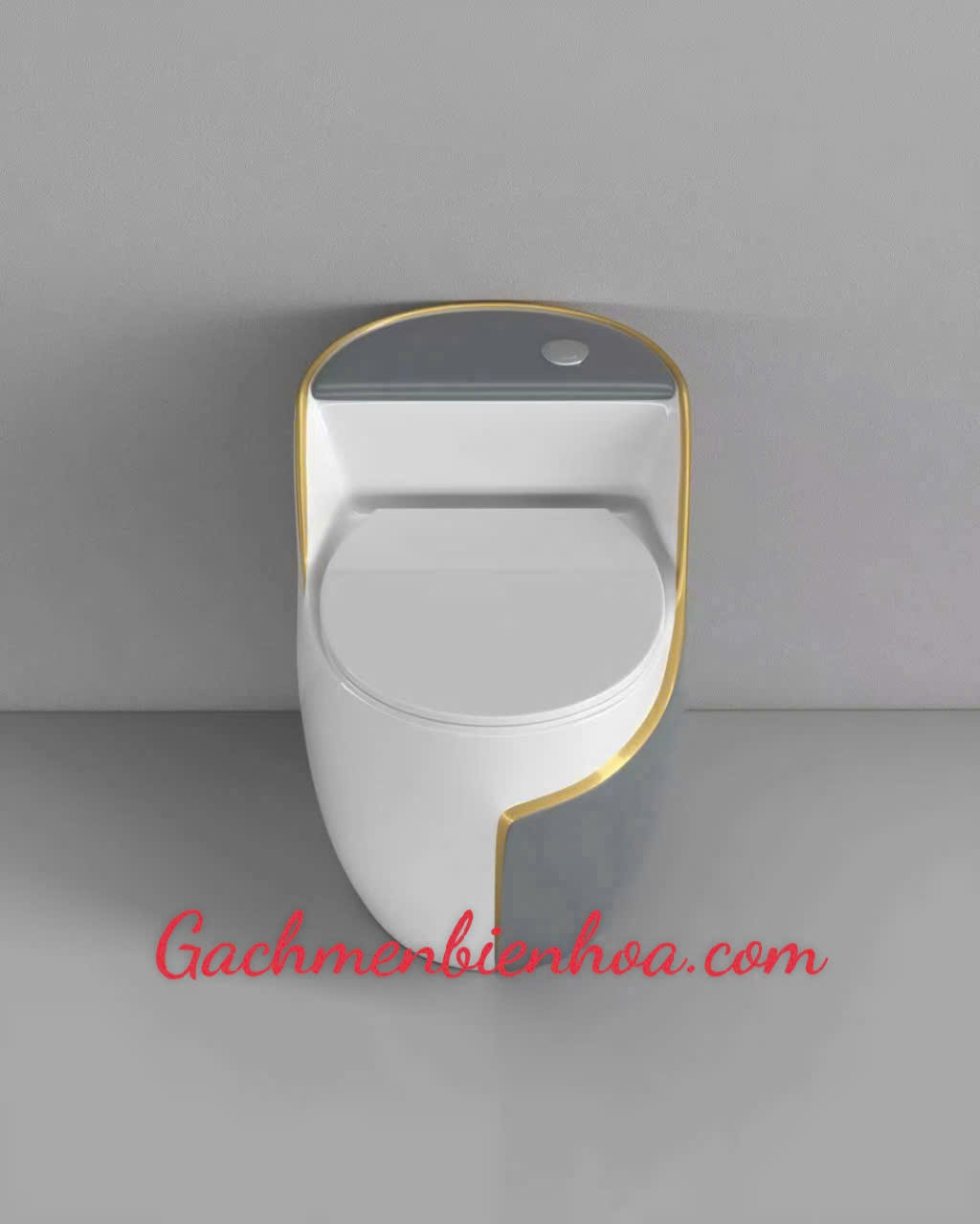 Bồn cầu hình trứng đen xám viền vàng với thiết kế sang trọng giúp không gian phòng vệ sinh trở nên đẳng cấp và sang trọng hơn.